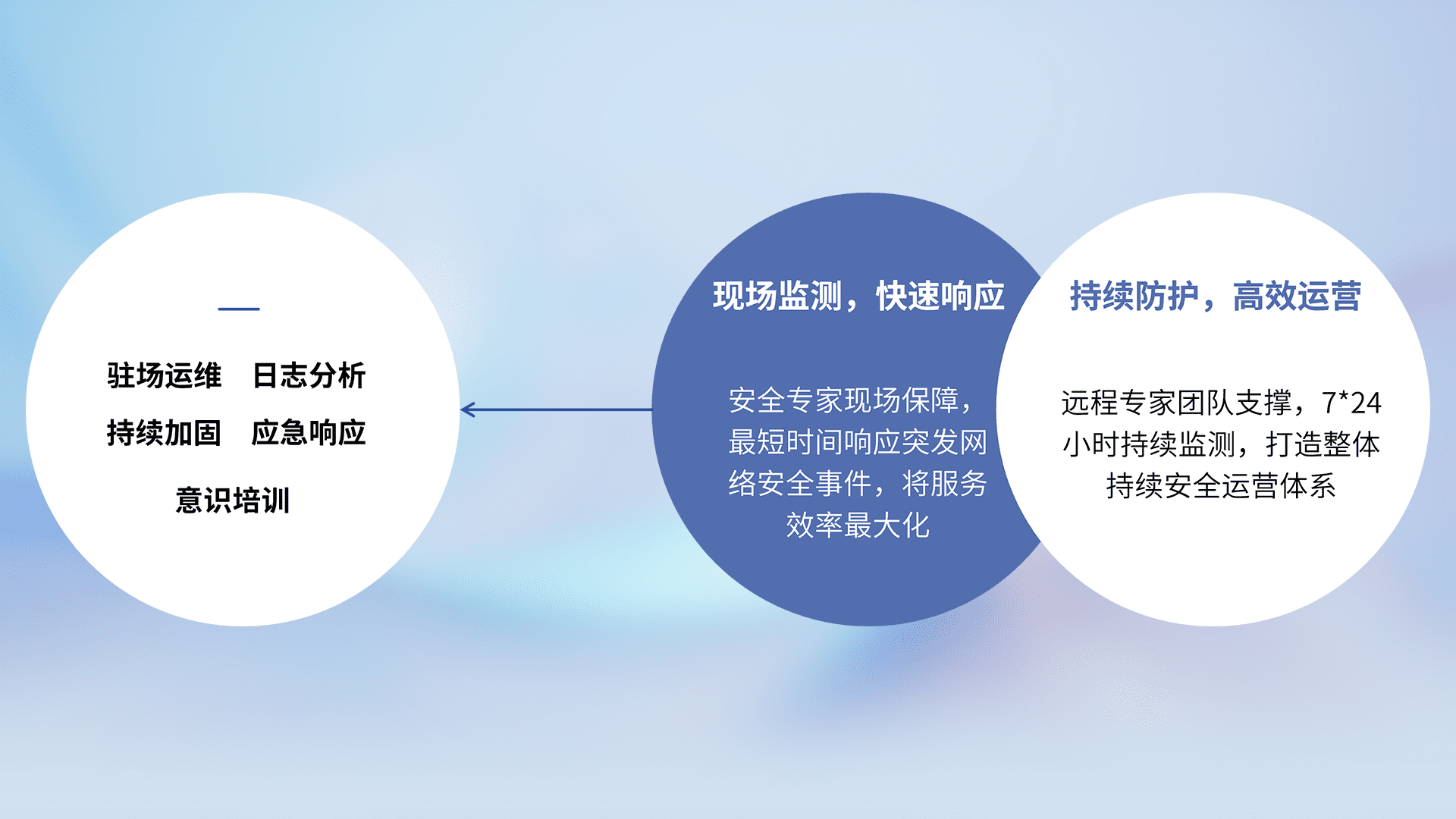 针对客户行业特性,,提供专属的一站式安全管理服务,,帮助客户全面感知网络空间威胁,,,通过安全专家的线上、、、线下防护支持,,实现风险闭环,,将安全保障常态化,,为客户打造常态化安全运维运营服务。。。。