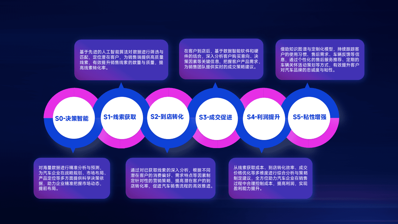 通过拓宽潜在客户来源、、优化线索分配并提高到店转化率,,以增强销售效率。。。。同时,,,利用线索数据不断优化分析模型,,有效提升转化率,,扩大营销影响力。。。。